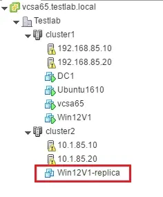 Now you know how to configure a VMware replication job for offsite disaster recovery. The VM replica is created in an offsite VMware vSphere environment. In the screenshot below, we can see an example of a local cluster on the production site and a remote cluster that is located in a DR facility.
