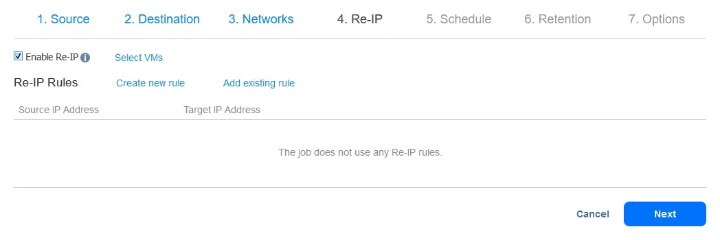 - After configuring network mapping, you can enable Re-IP to map the specific target IP addresses during recovery.